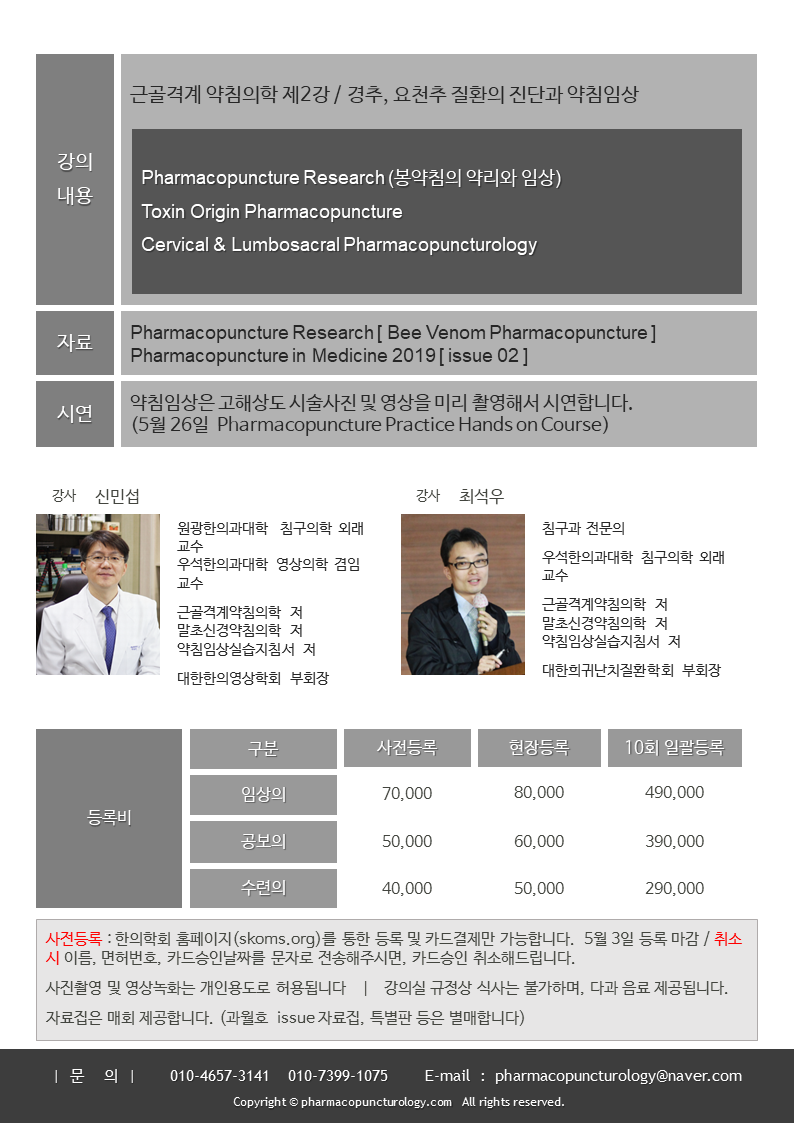 | 근골격계 약침의학 Hands on Course (0) | 2019.05.02 |