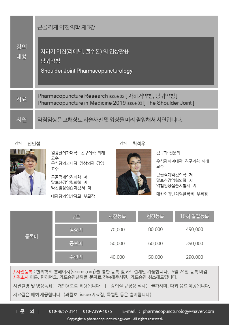 | 근골격계 약침의학 Hands on Course (0) | 2019.05.02 |