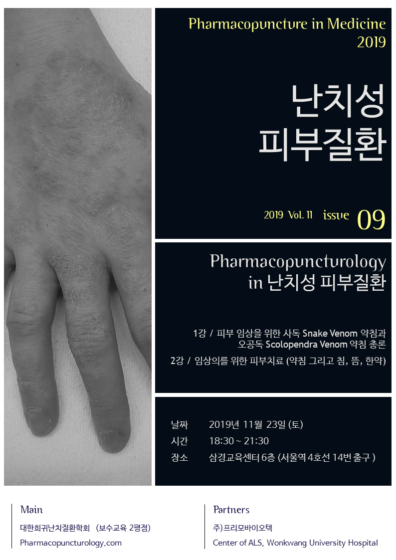 | Pharmacopuncture in Medicine 2019 희귀.난치 special (0) | 2019.11.28 |
